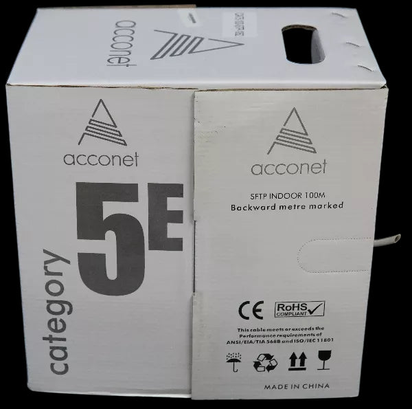 The Acconet CAT5-100-STP ethernet/LAN cable is engineered for indoor networking applications requiring noise reduction. Its Shielded Foiled Twisted Pair (SF/TP) construction provides protection against electromagnetic interference (EMI), making it suitable for environments with potential electrical noise sources. This cable supports data speeds of up to 1 Gigabit per second (Gbps) and operates at frequencies up to 100 MHz, meeting Category 5e specifications. Utilising Copper-Clad Aluminium (CCA) conductors, it is suitable for deployments where budget considerations are relevant, such as 100BASE-T Ethernet networks, CCTV systems, and general indoor data runs.