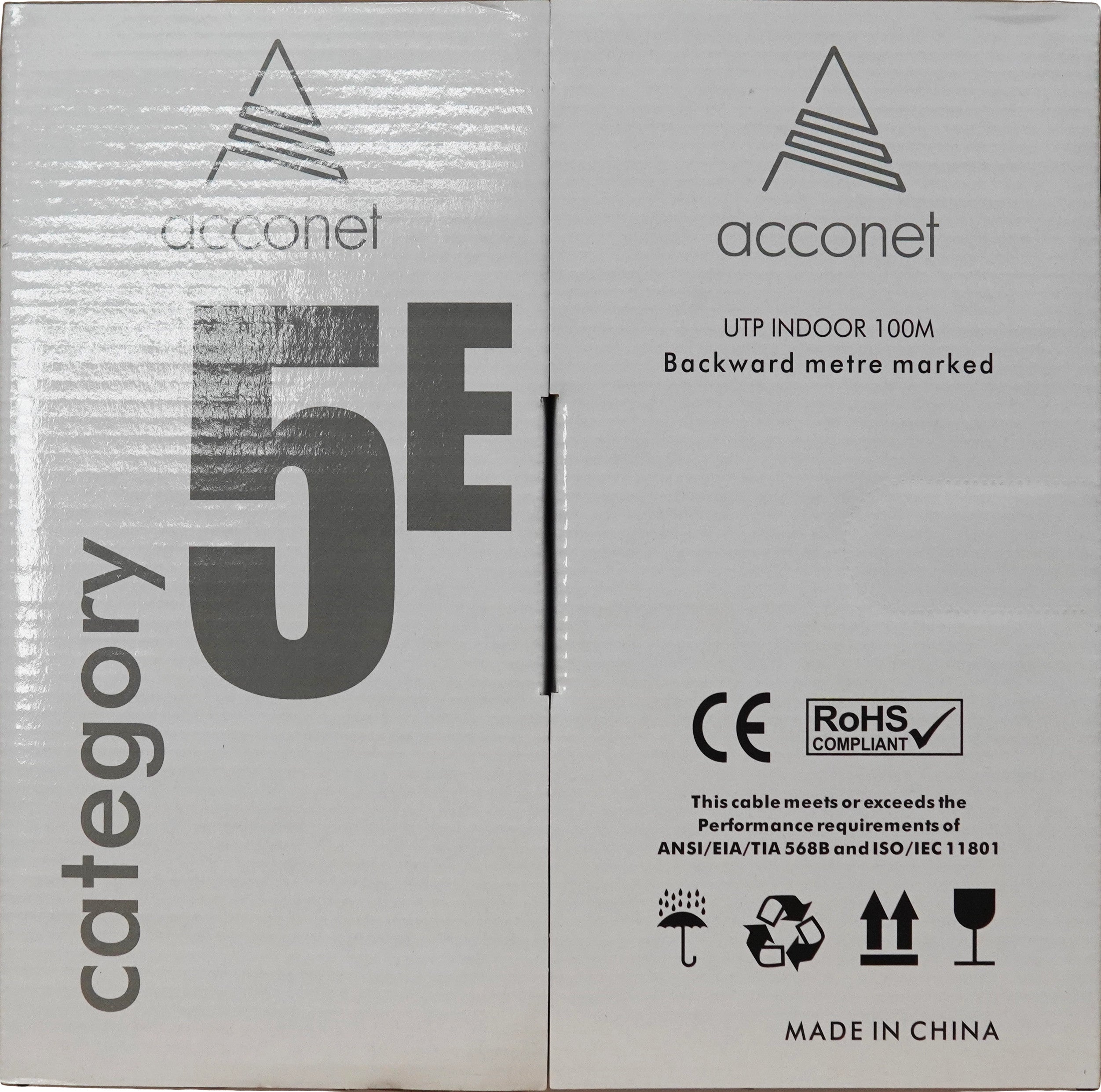The Acconet CAT5-100 ethernet/LAN able is a 100-metre (m) UTP (Unshielded Twisted Pair) cable supplied in a pull box, designed for indoor data networking. It features a CCA (Copper Clad Aluminium) conductor, which facilitates data transmission for 10/100BASE-T Ethernet applications. Due to its CCA composition, this cable is suitable for installations where Power over Ethernet (PoE) is not required and where cost considerations are primary for shorter runs or non-critical data links.