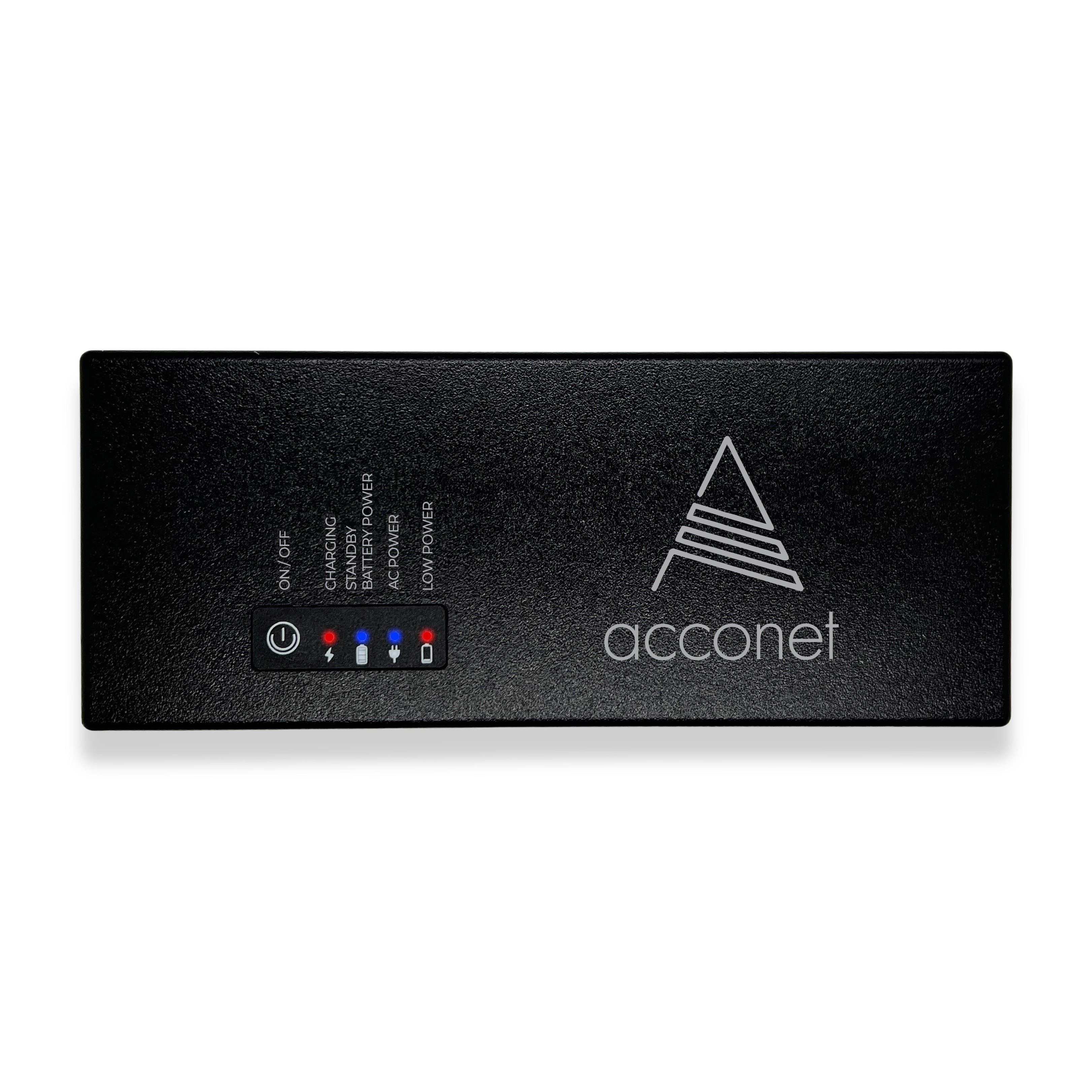 The Acconet Mini UPS AC-UPS-MINI-V2 is a compact Backup Power, perfect for households, small offices, or as part of a professional installation kit. The Acconet Mini UPS keeps your essential low-power devices running during load-shedding or outages. With a 48Wh lithium-ion battery (6 × 2,200mAh), it delivers 30W continuous output to ensure uninterrupted connectivity and security.