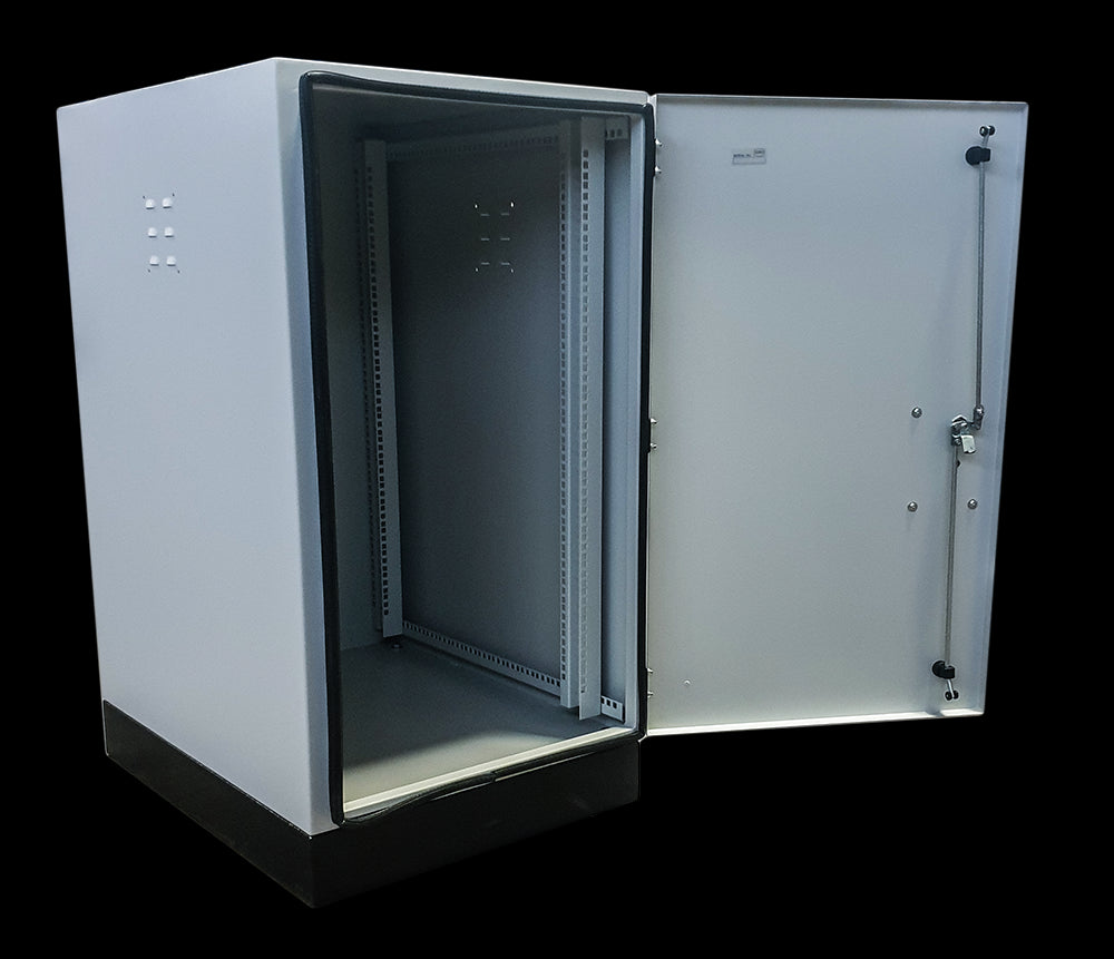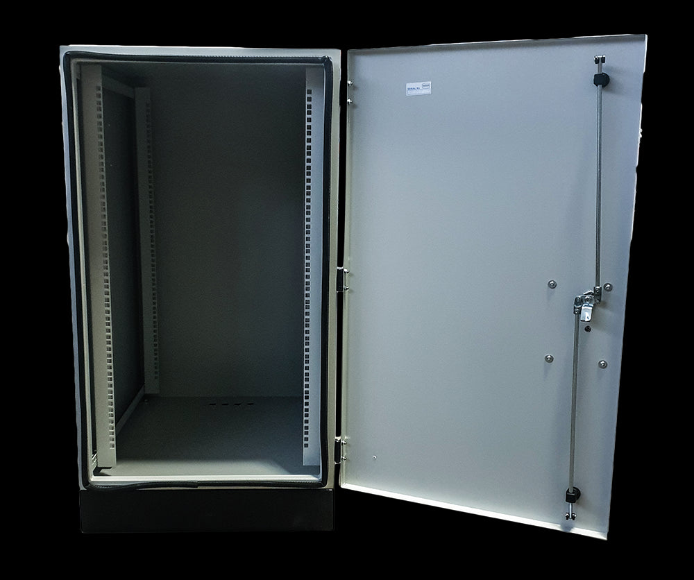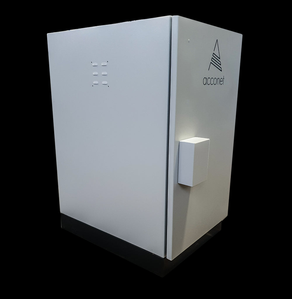 The Acconet 20U Outdoor Ventilated Cabinet (RM-CAB-20U-IP55-OUT) is an IP55-rated enclosure engineered for outdoor environments. It provides reliable protection for network equipment and other rack-mounted devices against dust ingress and low-pressure water jets. The cabinet's ventilated design promotes airflow to help maintain optimal operating temperatures for internal components. It includes a sturdy floor base for secure, stable installation. With a standard 20U capacity, this cabinet is suitable for housing a variety of networking hardware in external installations.