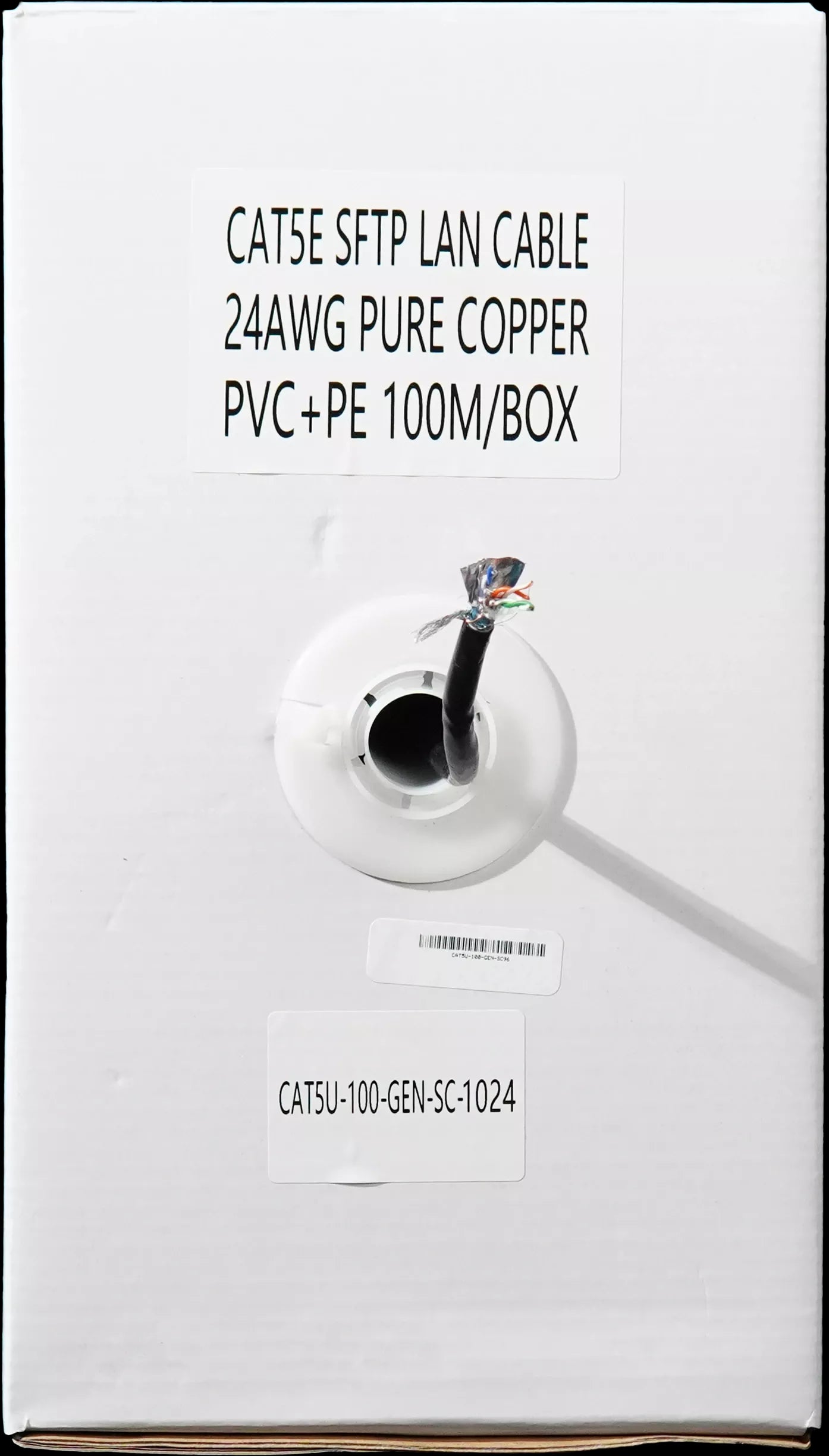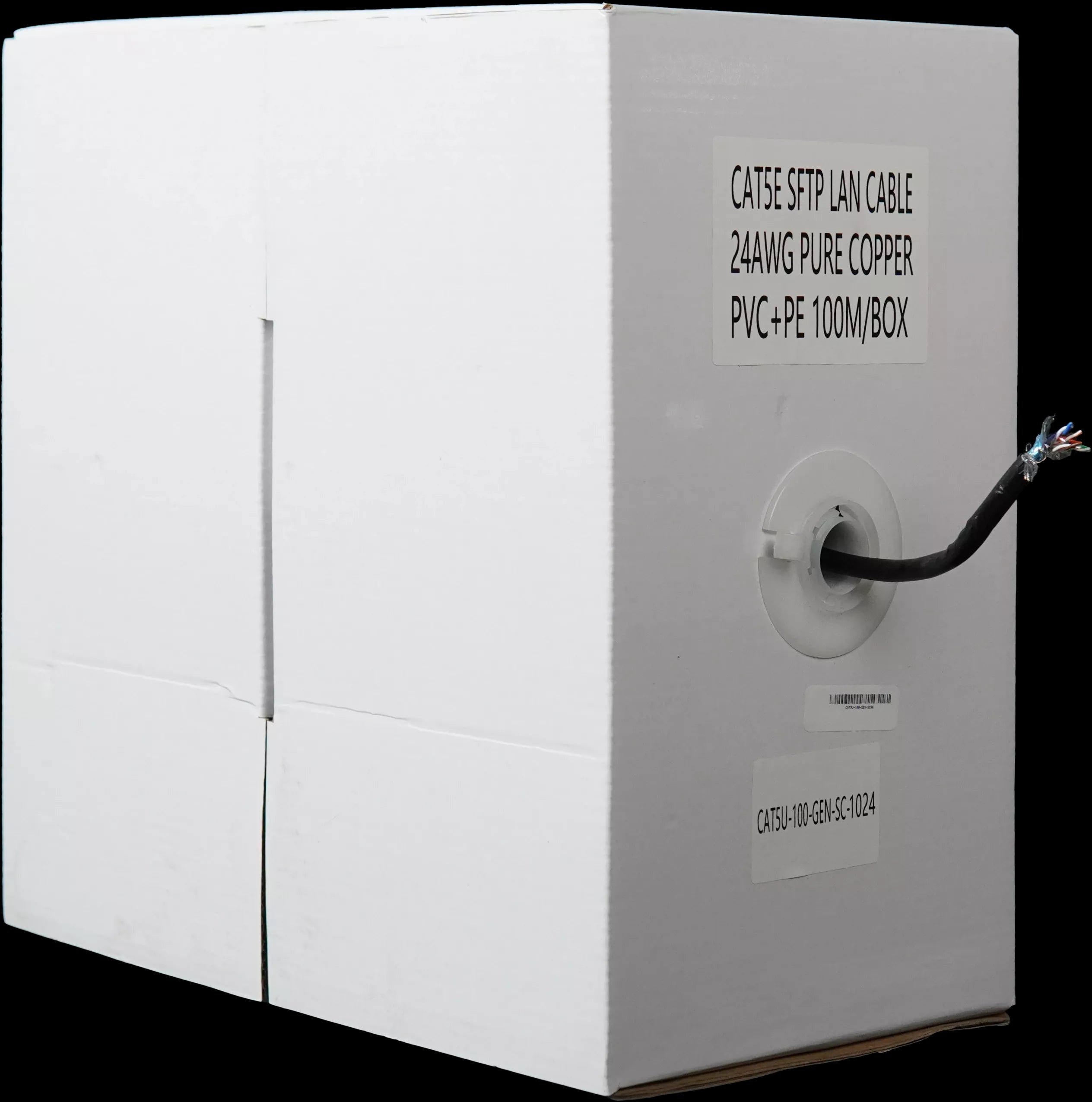 Essential CAT5U-100-GEN-SC Pull Box 100m outdoor shielded cable, solid copper, UV protected for resilient performance in harsh outdoor conditions. It supports Power over Ethernet (PoE), making it suitable for outdoor applications like IP cameras. A robust choice for maintaining network connectivity outdoors.