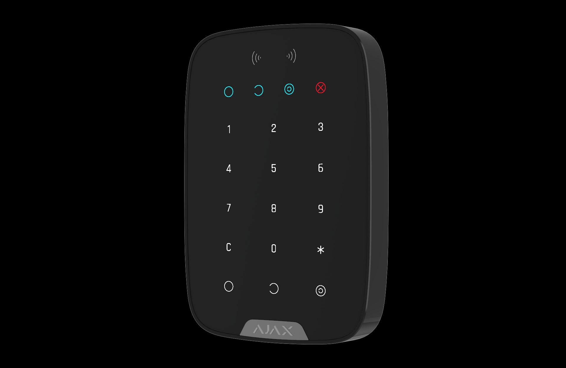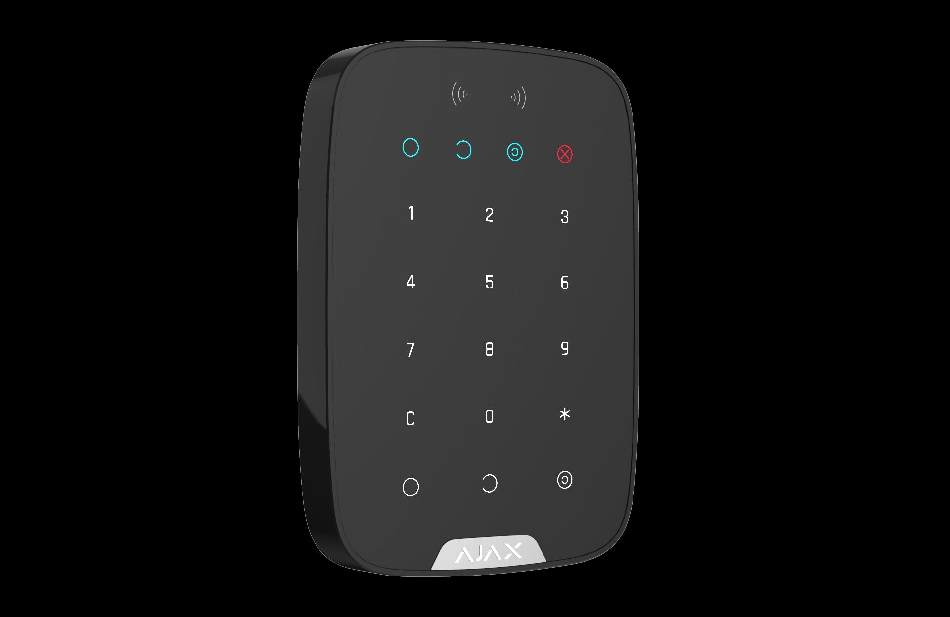 The AJAX Security - Keypad Plus Jeweller, Wireless Black Indoor Keypad (AJAX-KP-PLUS-B) is an advanced security keypad featuring RFID technology for fast, secure system control using key fobs or cards. The black design is both modern and practical, offering intuitive access to security modes. Powered by AJAX’s Jeweller technology, it ensures encrypted communication and tamper protection, ideal for homes and businesses.