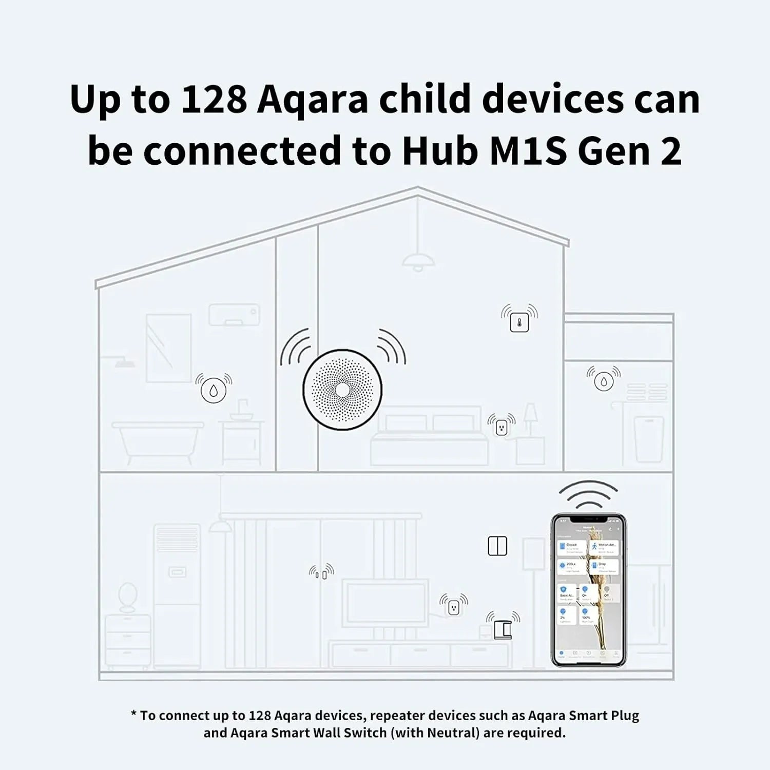 The Aqara HM1S-G02 is a powerful and versatile Zigbee 3.0 smart home M1S Gen2 hub designed to be the central controller for a wide range of Aqara sensors and devices. It features an integrated 2W speaker for alarm tones, chimes, and custom ringtones, alongside a 16-million-color RGB LED night light that doubles as a visual alert. With built-in Wi-Fi (2.4 GHz) connectivity, the M1S Gen2 supports up to 128 Aqara child devices and seamlessly integrates with major smart home ecosystems including Apple HomeKit, Amazon Alexa, Google Home, and IFTTT, enabling advanced automation and voice control. It enhances security with comprehensive alarm modes and provides robust local processing capabilities for reliable smart home operation.