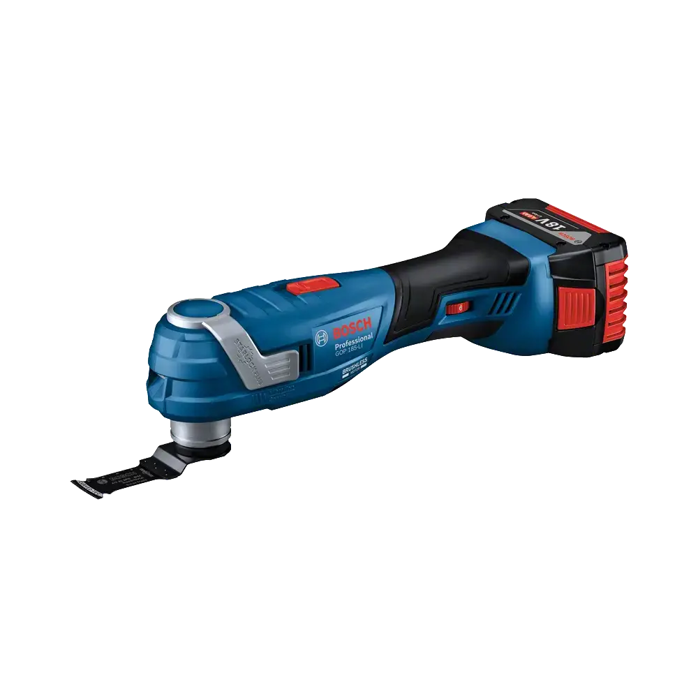 The cordless GOP 185-LI 18V multi-cutter is the top performer for precise cutting and trimming of wood and other materials. With built-in vibration-damping, vibrations are absorbed and reduced by up to 80% compared to predecessors, ensuring more accurate cutting. The compact build and slim grip enable better control and guidance to help with detailed work in narrow spaces. This advanced multi-cutter is compatible with all Starlock accessories and comes with a Bosch SDS Snap-in system for quick and convenient exchange of suitable cutting, sanding, and scraping attachments.