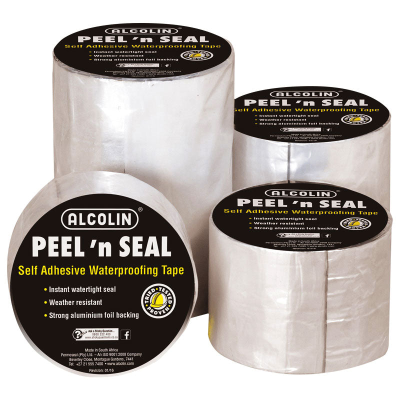 ALCOLIN PEEL ‘N SEAL is a ready to use, self adhesive flashing waterproofing tape, made from a polymer modified bitumen adhesive compound, backed with a pure aluminium foil laminate.