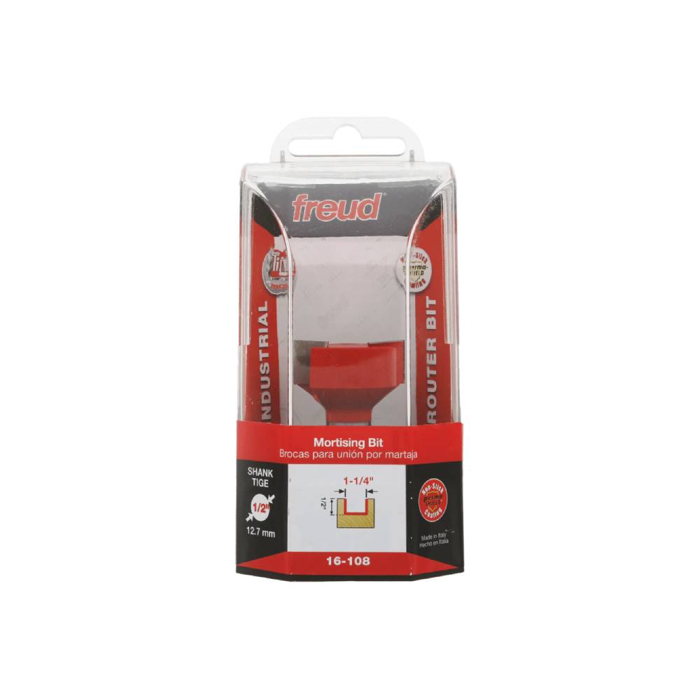 Freud Mortising Bits are designed to deliver clean, precise, splinter free mortises in plywood, veneer, solid wood or almost any composite material. Most of these bits feature a down shear design that helps eliminate splintering by pushing wood fibers down during the cut. Ideal for mortising hinges and hardware, or cutting grooves and dadoes. This bit is also ideal for keeping your CNC router’s spoilboard perfectly flat for the utmost accuracy in your projects. These bits are designed with deep center gullets for maximum material removal without chip loading. Use for mortising in any CNC or portable router, or for spoilboard surfacing in any CNC machine.