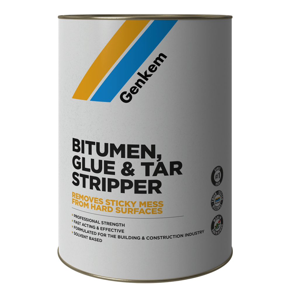 \nA highly concentrated blend of aromatic stripping solvents and emulsifiers for the effective removal of bitumen, contact adhesive and other glues from various hard surfaces, An effective stripper of varnishes and sealers and can also be used for cleaning floors, e.g. cement where carpet tiles have been stuck down with bitumen or where carpets have been stuck down with contact or latex adhesives, Do not use Genkem Bitumen, Glue and Tar Stripper on wooden floors as this can stain the floors or damage the wood.
