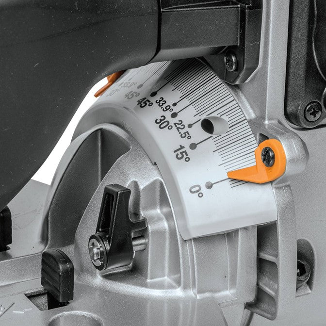 - Double Insulation, Electric Brake, Bevel Cutting 45 LR, Soft Start, Constant Speed, Laser Marker and Dust Collecting. With TCT Wood cutting blade.