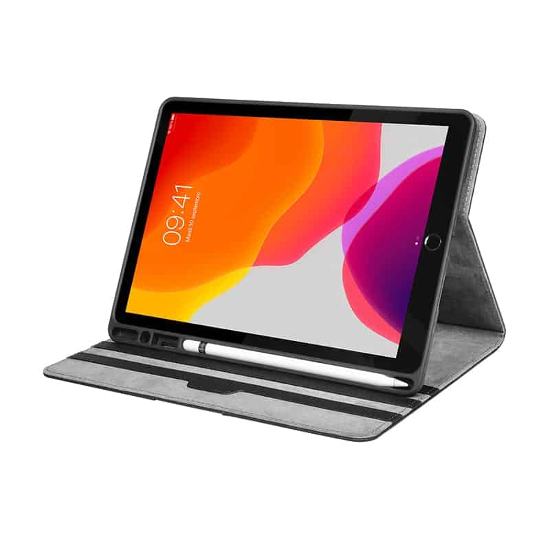 The Port Designs Muskoka Tablet Case for iPad 10.2" 2019 offers advanced protection for your Apple iPad 10.2". This elegant protective folio features a sleeping mode as well as a holder for your Apple Pencil. The protective flap covers and protects your screen and when opened wakes your iPad from sleep mode. The back of the case has a folding adjustable stable foot so you can position it into various modes for typing or watching videos. The case fully protects the iPad while allowing ports, speakers and cameras to function without any issues. For more convenience the Apple Pencil holder also features a slot for an inkwell position to keep the pencil while you work.