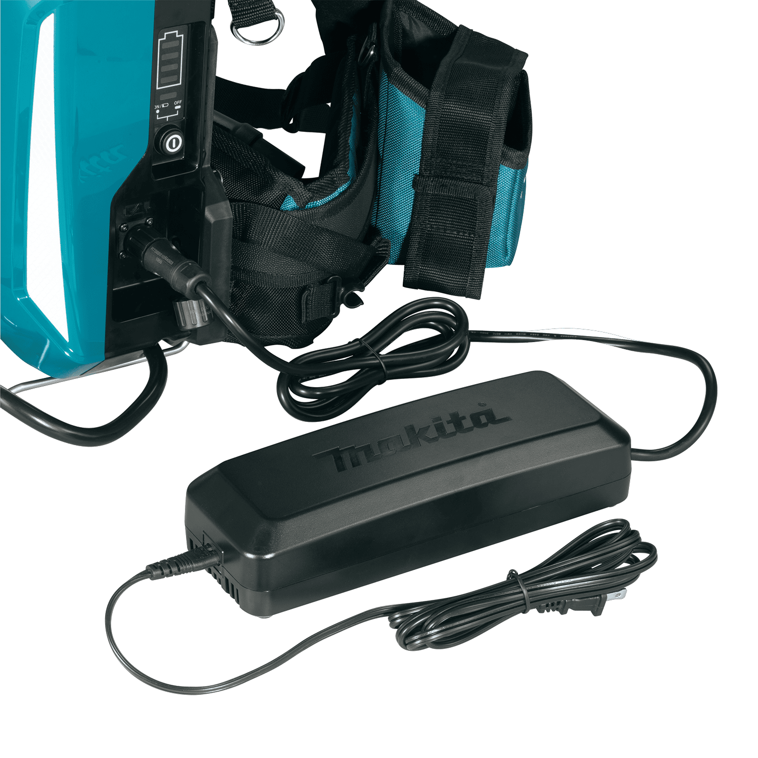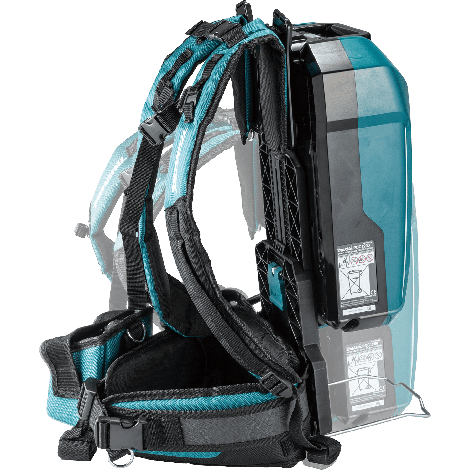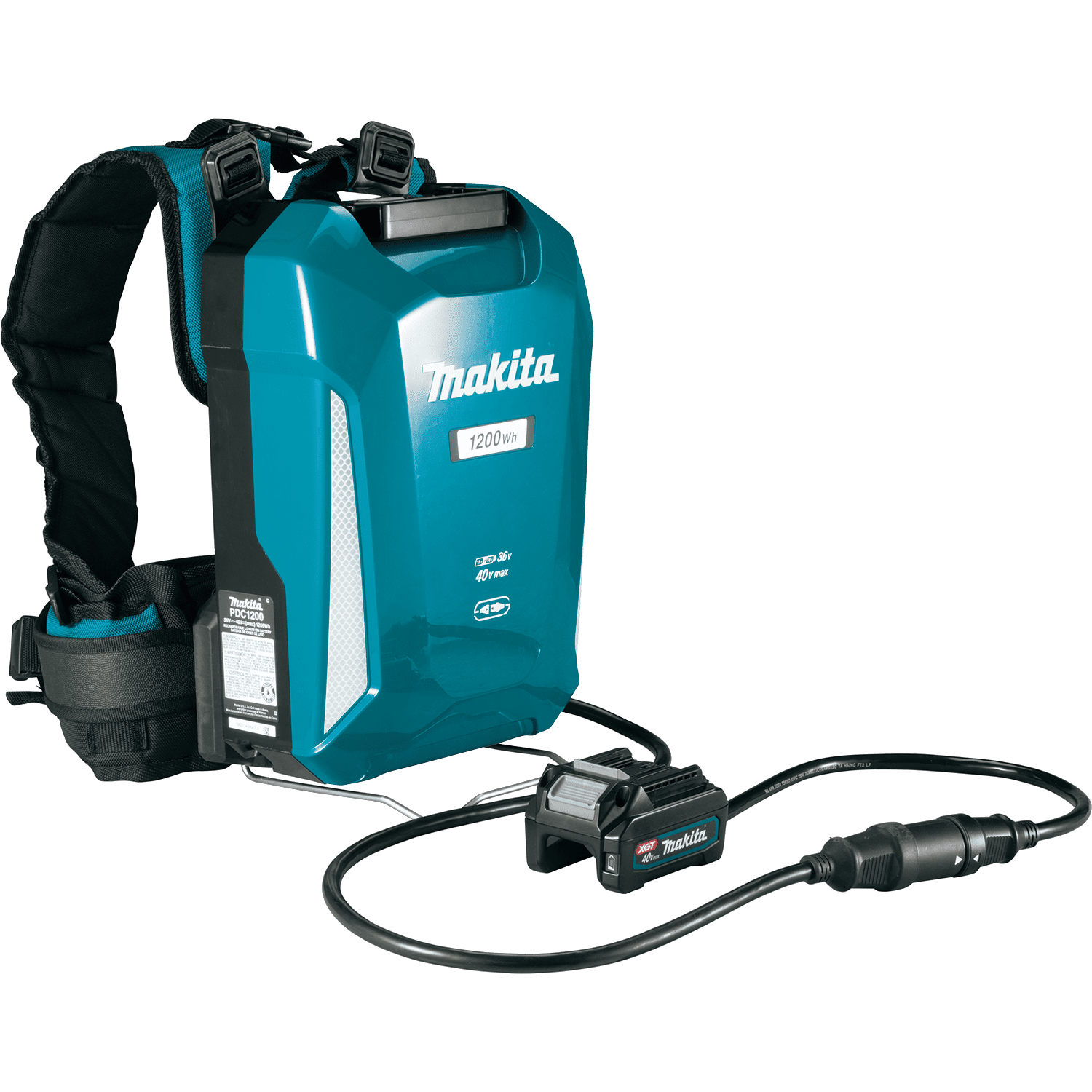 The Makita PDC1200A01 Portable Backpack Power Supply is a high-capacity backpack that delivers 1200 watt hours of output. It provides longer run time to last an entire workday. Actual run times vary by product, application, and workday amount. It works with 36V (18V X2) LXT (adapter included) and 40V max XGT (adapter sold separately) systems. The battery box can be detached from the harness and to be used a stationary power supply. It features a flat base, allowing the product to stand upright. There is an integrated carrying handle for convenience. The power supply reaches a full charge in 3 hours (AC power supply included).