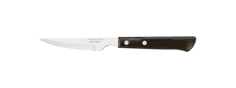 Polywood 4" Steak Knife With Stainless-Steel Blade And Brown Treated Wood Handle Warranty: 5-year warranty against manufacturing defects (90-day warranty as required by law, plus 4 years and 9 months contractual warranty). With its micro serrated edge, this knife is ideal for cutting cooked meats.The stainless steel blade is highly durable thanks to the heat treatment. Polywood treated handle with aluminum rivets.Dishwasher safe to make your daily routine easier. The Tramontina Polywood 4-inch steak knife with stainless-steel blade and brown treated wood handle is an excellent option for those seeking a precise, elegant cut experience during a barbecue. Everybody enjoys a barbecue, throughout the world it is synonymous with joy, brotherhood and freedom. With this in mind Tramontina has extended its line to meet the different requirements for preparation and for serving a great barbecue.