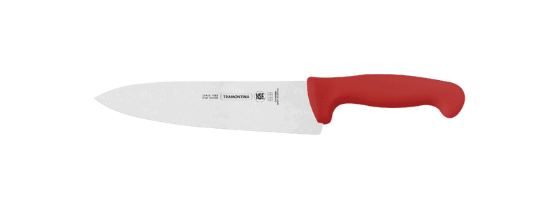 Professional 8" Meat Knife With Stainless-Steel Blade And Red Polypropylene Handle Warranty: 90-day warranty against manufacturing defects. Ideal for cutting on cutting boards, due to the free cutting edge along its entire length.Strong, sharp and durable blade.Special stainless-steel blade heat-treated in sub-zero process, ensuring average hardness levels of 56 HRc.Tapered honing at the right thickness for each application, ensuring precision and durability of the cutting edge.Anatomical, hygienic and safe handle.Textured polypropylene handle, offering greater comfort and safety in handling.Handle injection-molded directly onto the shaft to ensure perfect fixing and prevent residue retention.Handle with antimicrobial protection that inhibits the growth of fungi and bacteria, providing hygiene benefits and reducing microorganisms that cause contamination. The Tramontina Professional 8-inch meat knife with stainless-steel blade and red polypropylene handle undergoes a heat treatment process, which gives the knife strength and durability so that you can cut more effectively and practically. To give you added comfort, the polypropylene handle fits the hand perfectly, providing stability so you can cut safely and precisely. Tramontina brings quality!