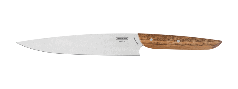 Verttice Stainless Steel 8" Utility Knife With Natural Wood Handle Warranty: 90-day warranty against manufacturing defects. With its sword-like tip, this knife helps with opening and piercing food items.The stainless steel blade is highly durable thanks to the heat treatment. Natural wood handle with stainless steel rivets. If you want a versatile, functional knife to complete your set of kitchen knives, you can count on Tramontina's Verttice stainless steel 8" utility knife with natural wood handle. With a stainless steel blade, this knife is highly resistant and durable. The natural wood handle with stainless steel rivets is durable and very comfortable to use. A must-have knife to make your daily food preparation much easier!