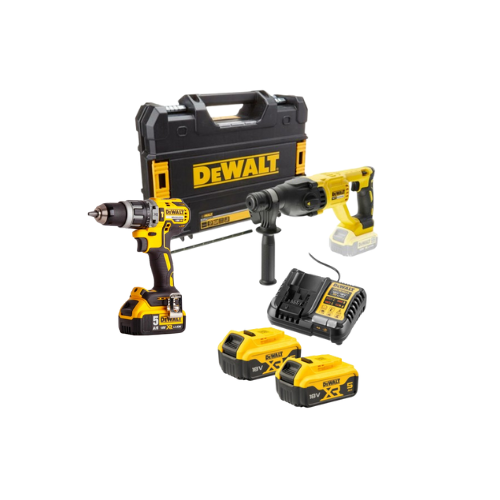 1 x HAMMER DRILL DCD796,1 x GRINDER DCG409VS, 2 x BATTERIES 18 V 5 AH,1 x CHARGER DCB1104, 2 x CARRY CASES TSAK - DWCOMBO85