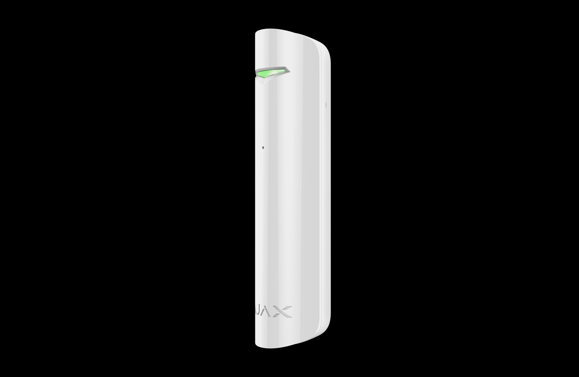 The Ajax Security GlassProtect is a wireless indoor glass break detector. It features the SmartDetect algorithm to prevent false alarms, temperature compensation, and a detection range of up to 9 meters with a 180° detection angle. This device ensures precise detection and reliable security in any indoor setting.