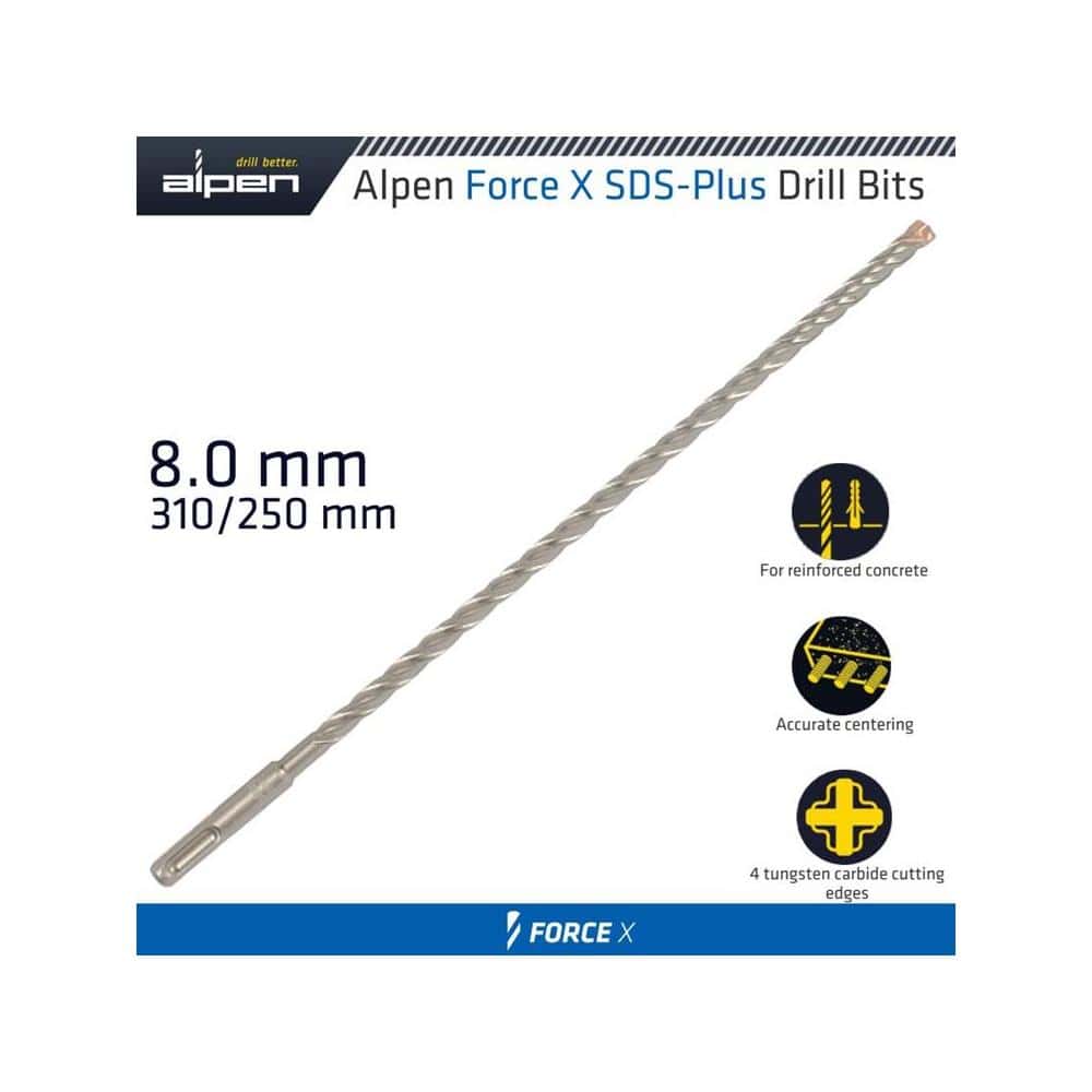 FORCE X 8.0 x 310/250 SDS-PLUS REBAR DRILL BIT X4 CUTTING EDGES