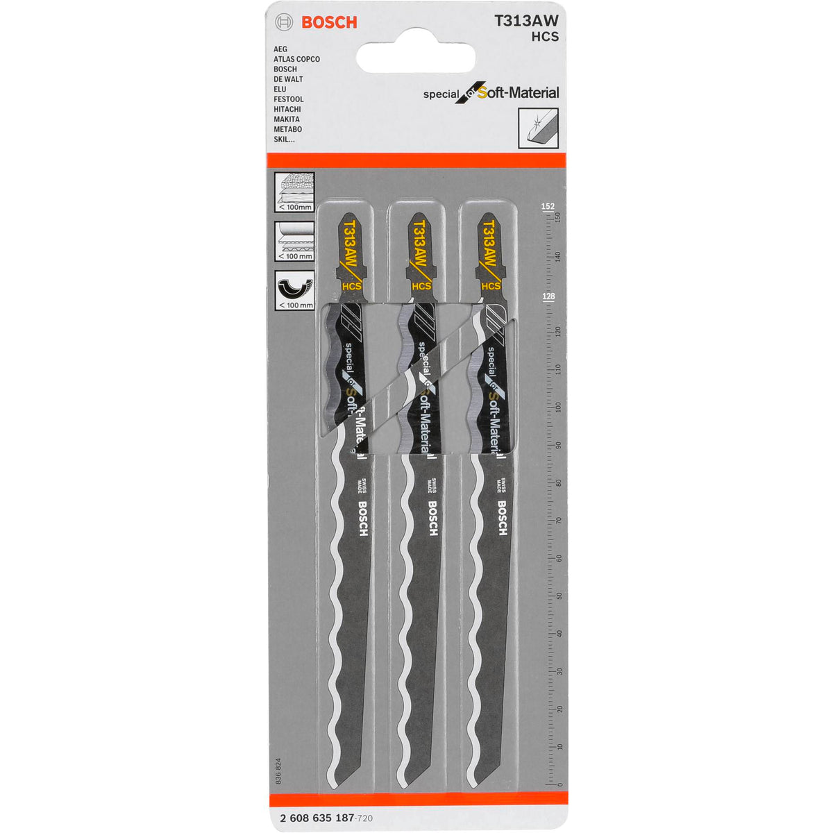Bosch Accessories - Jigsaw blades - Jigsaw blade HCS T 313 AW Special for Soft Material, 3 pc
