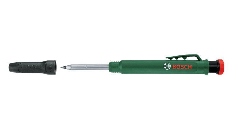 DIY enthusiasts will appreciate the high quality, flexibility and effectiveness of the Bosch deep hole marker pencil. The pencil has a removable cap, so as well as readily marking flat surfaces, once the cap is taken off, it reaches easily into deep holes for flexible marking. A superior graphite lead core means this pencil can be used to mark multiple materials including stone, concrete, brick, wood and paper. The pencil is always pointed and read for use thanks to an integrated sharpener. This pencil can be depended on again and again for many years thanks to its robust composition and stainless-steel tube.