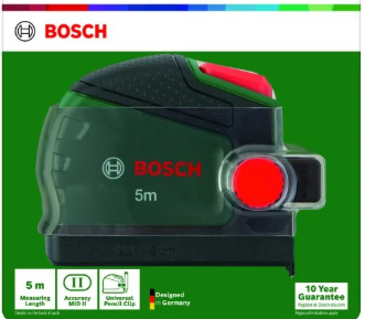 For measuring and marking, decorating, and multiple other measuring tasks in and around the home, the hard-wearing Bosch Tape Measure is the only tool required. It allows highly precise measuring with MID II accuracy level. The auto lock function delivers a high level of convenience with a stable hold for fast assessment of short and long distances. The robust, 22mm wide, nylon-coated tape provides tape stability up to 2 metres.