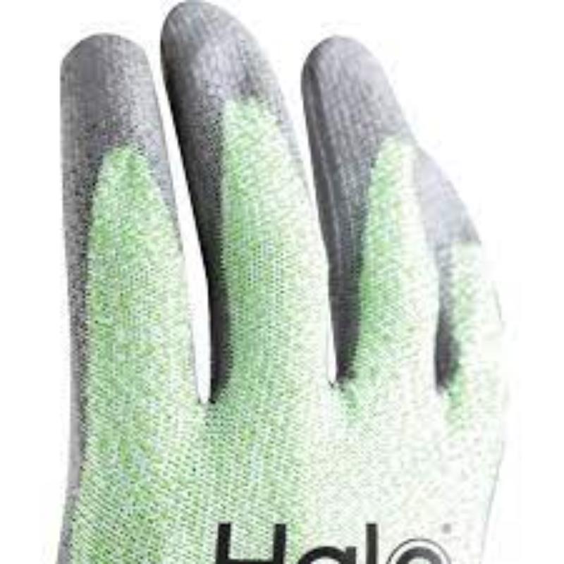 Halo SEAMLESS NYLON PU PALM COATED CUTD GLOVES GREY/GREEN SZ-6