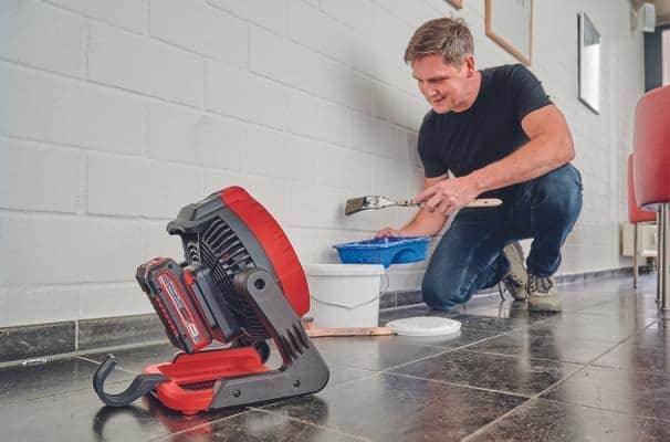 The Einhell cordless fan GE-CF 18/2200 Li is a breath of fresh air: The cordless device makes things happen and can be used anywhere, ensuring ideal air supply or distribution of air flows. The fan is a member of the Power X-Change family; the battery can be flexibly combined with more than 200 Einhell devices – whether from the field of tools or gardening. The cordless fan is compact and portable and is therefore intended for both outdoor and indoor use. The adjustment on the fan head is infinitely variable. Thanks to numerous fastening options, use is universal – whether on the terrace or balcony, in the study or kitchen, or in the workshop. There are three stages for adjusting the air flow. Up to 18 hours of battery life possible with a 5.2 Ah PXC battery. Delivery does not include battery or charger. These are available separately, e.g. as a practical Einhell starter kit.