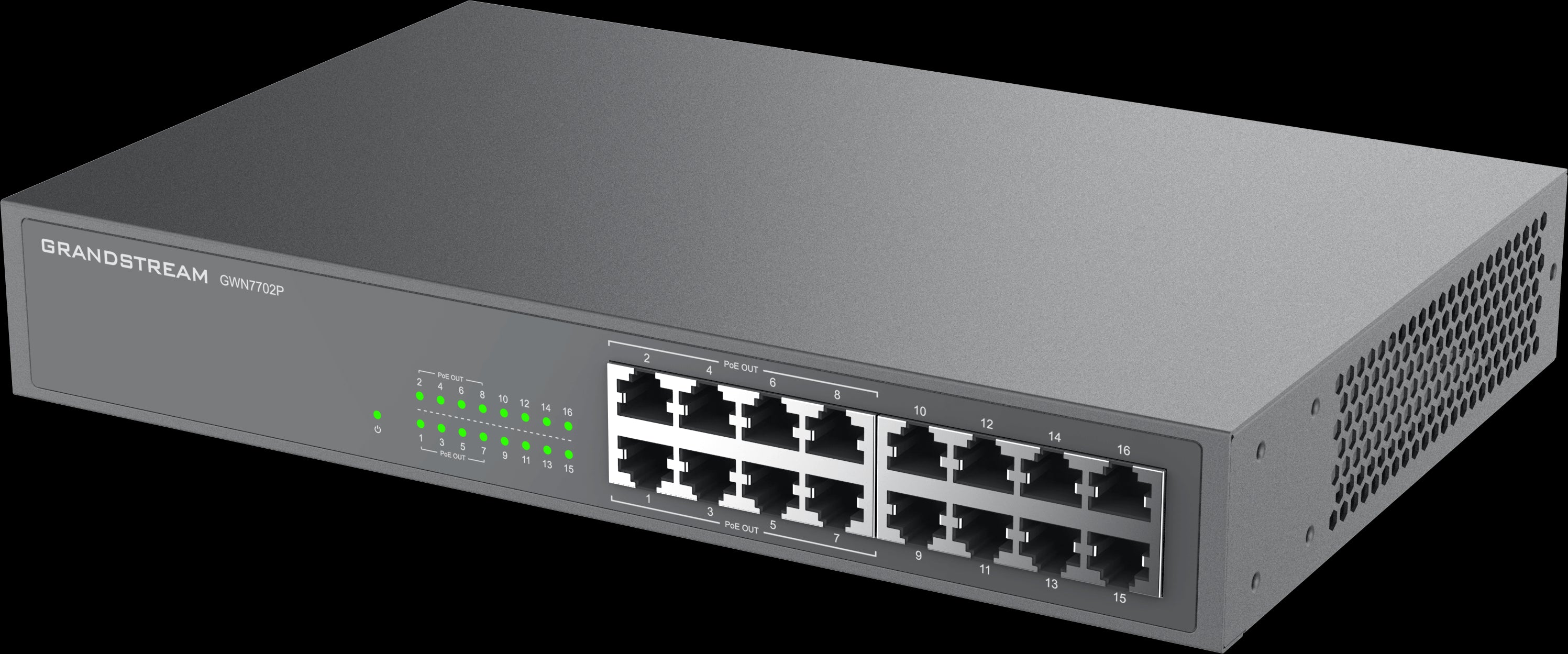 16x GbE RJ45, 8x PoE 802.3 af/at, up to 30W per port, 138W power budget