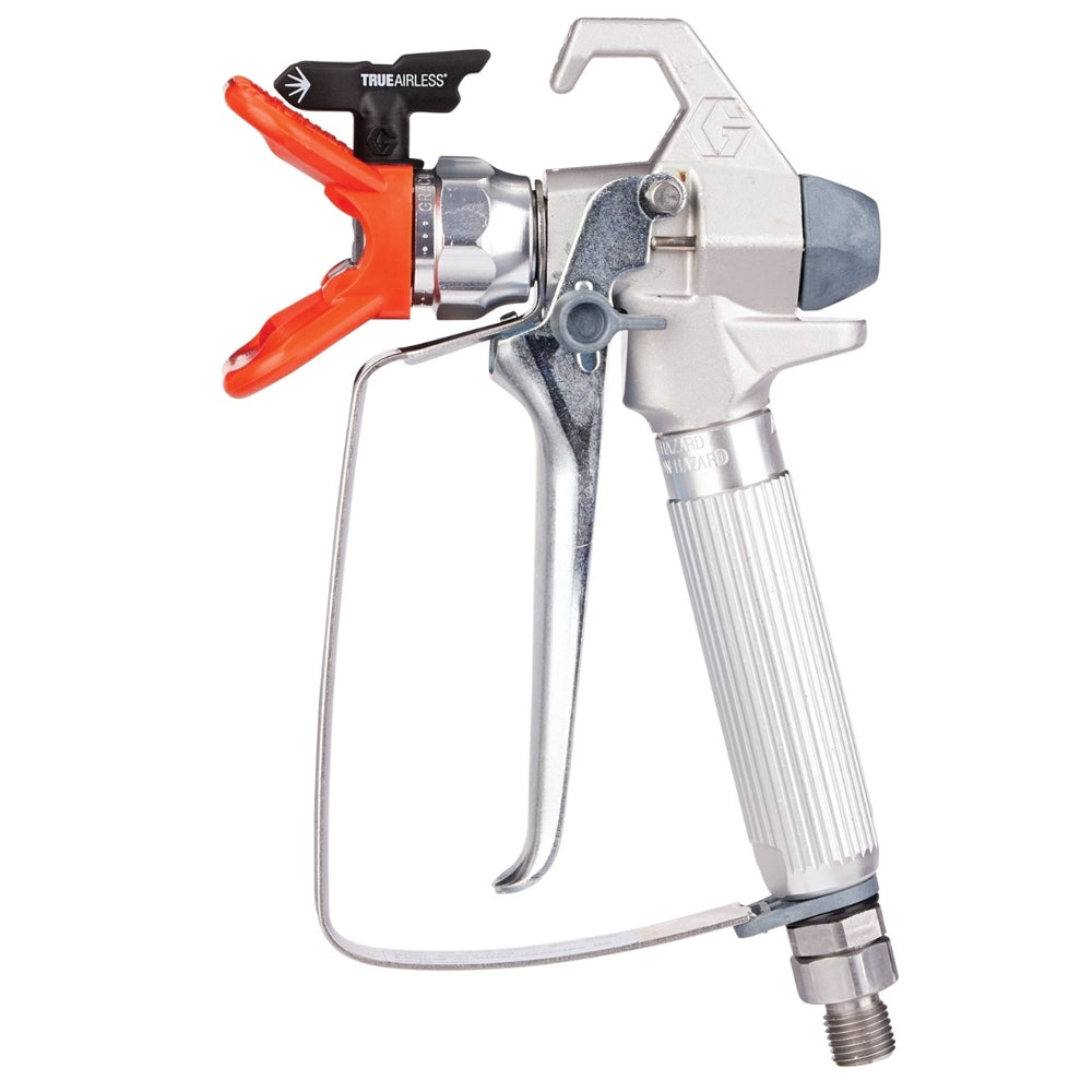 This lightweight spray gun is well-balanced with a full 4-finger trigger for a comfortable spraying experience. Includes a TrueAirless 515 spray tip and spray tip guard.