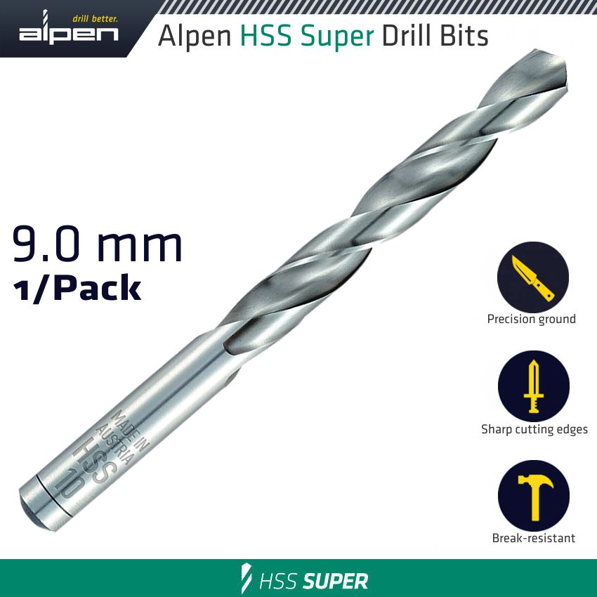 HSS twist drill ground from solid, bright finish: toughness and precision combined with excellent cutting efficiency for drilling alloyed carbon and plain steel.