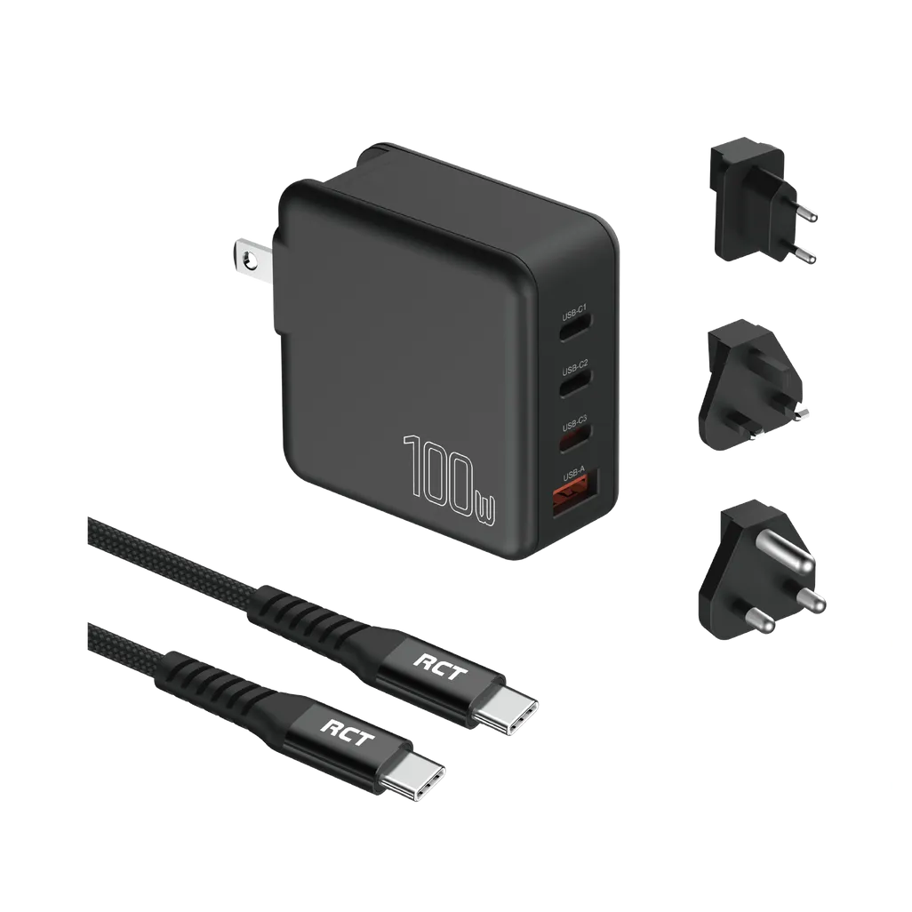 RCT 100W Charging Travel kit - Travel adaptor + (EU+UK+SA) Plug and cable