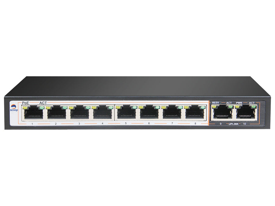 Scoop 8 Port Fast Ethernet PoE 96W 2 Gigabit Switch