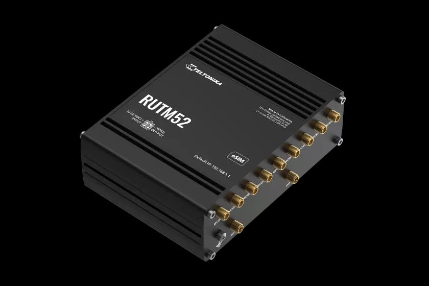 The RUTM52 Industrial 5G Router combines dual-SIM 5G NR connectivity, Wi-Fi 5, and advanced networking features, making it ideal for M2M and IoT applications. It ensures continuous high-speed connectivity through automatic WAN failover, offering reliable performance in industrial and remote environments. With a rugged design, GNSS tracking, VPN support (IPsec, OpenVPN, PPTP, L2TP, and GRE), and serial communication interfaces (RS232, RS485), the RUTM52 is engineered for demanding deployments. It also comes with RutOS software for enhanced control, automation, and event notifications.