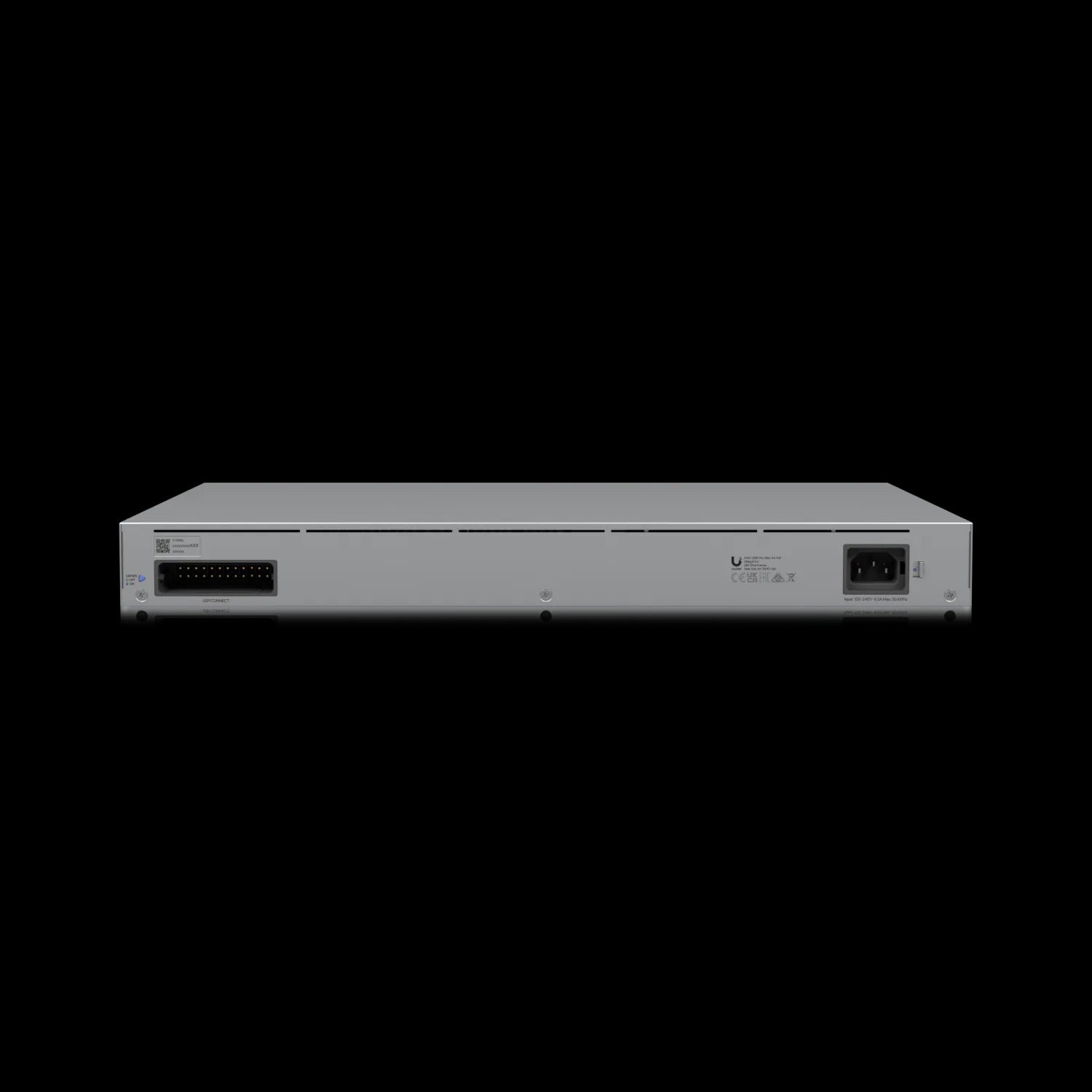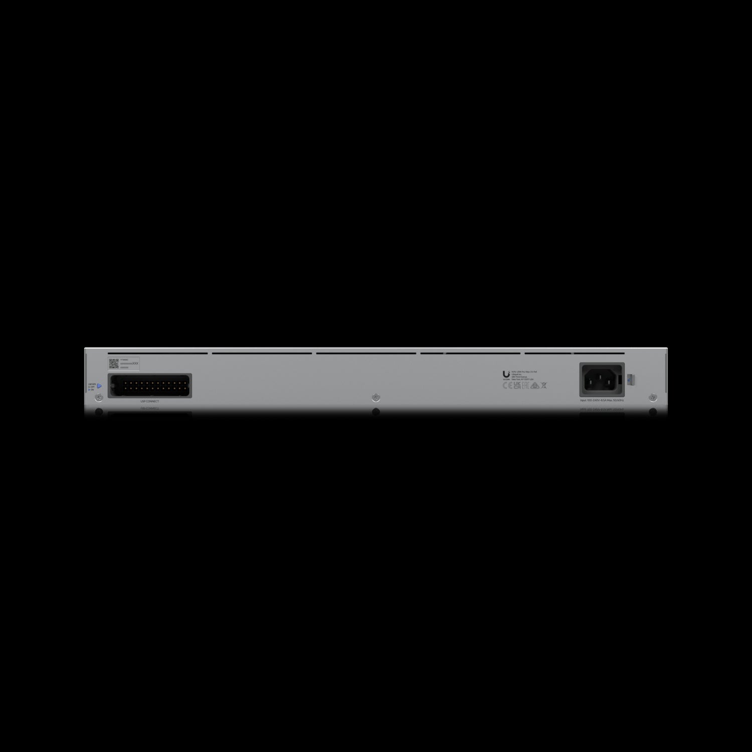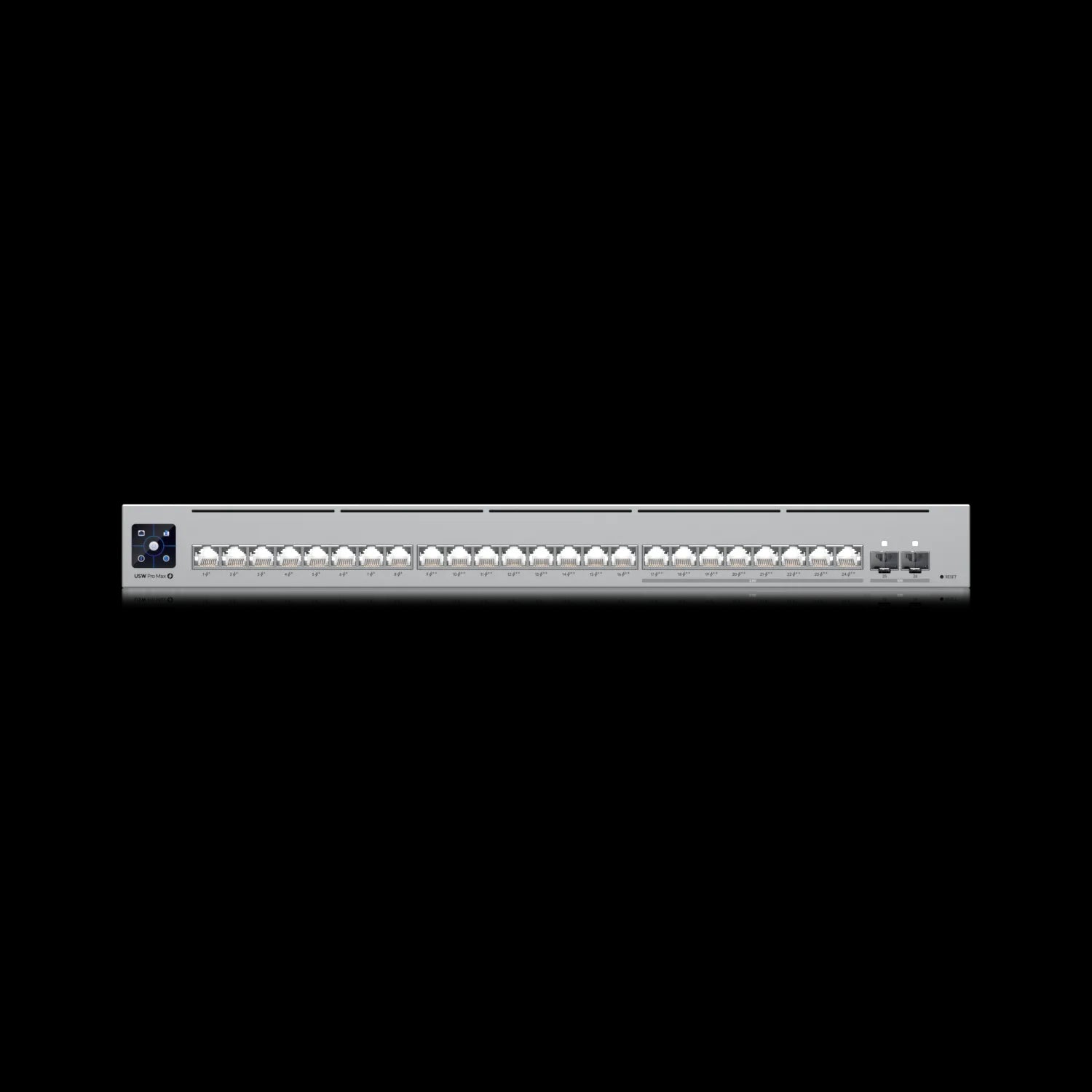 The Ubiquiti UniFi USW-Pro-Max-24-PoE is an advanced Layer 3 managed switch engineered for high-performance enterprise deployments. It features 16x 2.5 Gigabit Ethernet RJ45 ports (8x PoE++ (60W) and 8x PoE+ (30W)) and 8x Gigabit Ethernet RJ45 ports (8x PoE+ (30W)), offering a substantial 400W total PoE budget. Additionally, it includes 2x 10 Gigabit SFP+ uplink ports for high-bandwidth connectivity. This switch innovates with UniFi's Etherlighting™ technology for illuminated port identification and integrates a 1.3" touchscreen LCM for real-time status. With Layer 3 routing capabilities (e.g., static routing, inter-VLAN routing, DHCP server) and comprehensive Layer 2 features, it provides traffic management and security, is rack-mountable and managed seamlessly via the UniFi Network application.