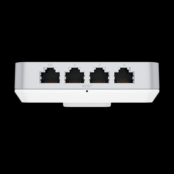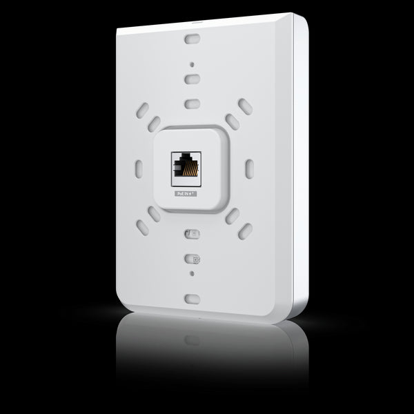 Ubiquiti UniFi U6-IW access point is a wall-mounted Wi-Fi 6 AP with 6 spatial streams and a built-in 4-port switch ideal for single-room coverage in hospitality environments